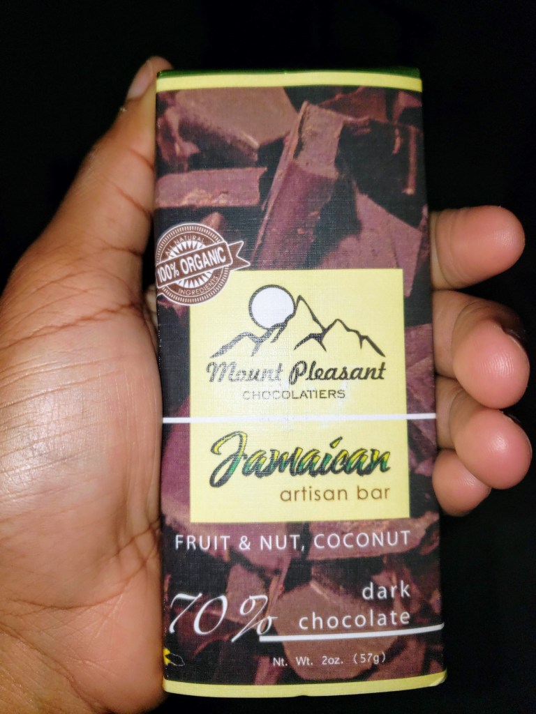 9. Enjoy local artisan chocolate from Mount Pleasant Chocolatiers. I fell in love with their chocolate from the inaugural Jamaica Blue Mountain Coffee Festival in 2018. Your chocolate-loving friends will LOVE this gift; Mount Pleasant organic chocolate bars are rich, not too sweet and perfectly complimented by the various fruits, nuts and subtle spices added to their different bars. The bar below is my favourite.