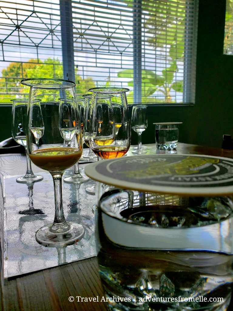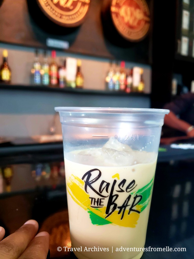 We ended the tour with sampling their rum products pictured below and the differences between the age and flavour profiles were explained. Swirl, sip, cleanse the palate with some water then repeat! My favourites were the Rum-Bar Gold and that rum cream! It was so creamy and smooth and delicious! Perhaps they have made me a convert with this one. I’ll look out for it and purchase once I stumble across it on supermarket shelves. That taste test wasn’t enough, so I was delighted to get a proper cup of their rum cream on my way out as one of the options for the final cocktail.