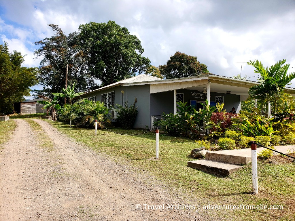 Lluidas Vale is just under an hour’s drive from Kingston using the North-South Highway (also known as the Edward Seaga Highway or A1). From here, take the Linstead exit which starts at JM$700 for class one vehicles in 2025. After paying the toll at the Linstead Toll Plaza, continue along the main road (A1) through Ewarton and past the bauxite plant, formerly ALCAN. It’s a straight road until you get to a fork then take a left to get onto Worthy Park Road. Thankfully there was a sign there to confirm the correct road. After this, you cannot get lost because it’s one straight road. Follow the road and signs until you reach the gate to the estate. You’ll recognize it by the bright red sign and this cute red and green wagon. P.S. Google Maps was a very reliable guide which isn’t always the case in Jamaica.