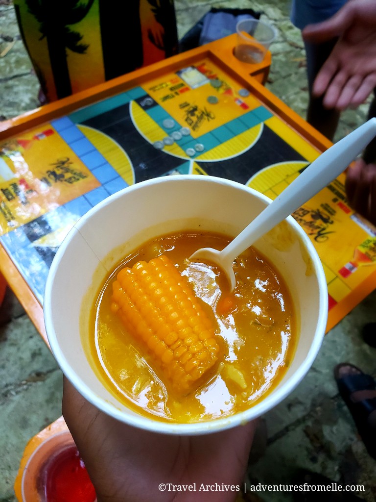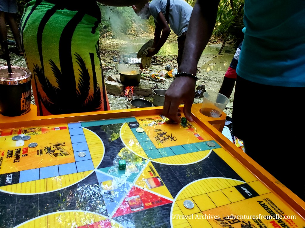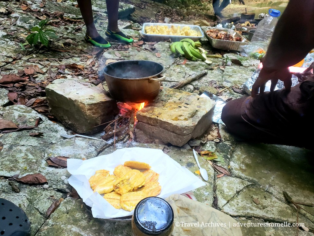 After frolicking by the waterfall for about 2 hours we turned to playing games and of course, eating the food which our travel-chef whipped up for us over wood fire. The menu was soup, the sweetest roasted yellow heart breadfruits I’ve had in years and fried green (unripe) plantains. Yum! This was the perfect fuel after a long drive out.
