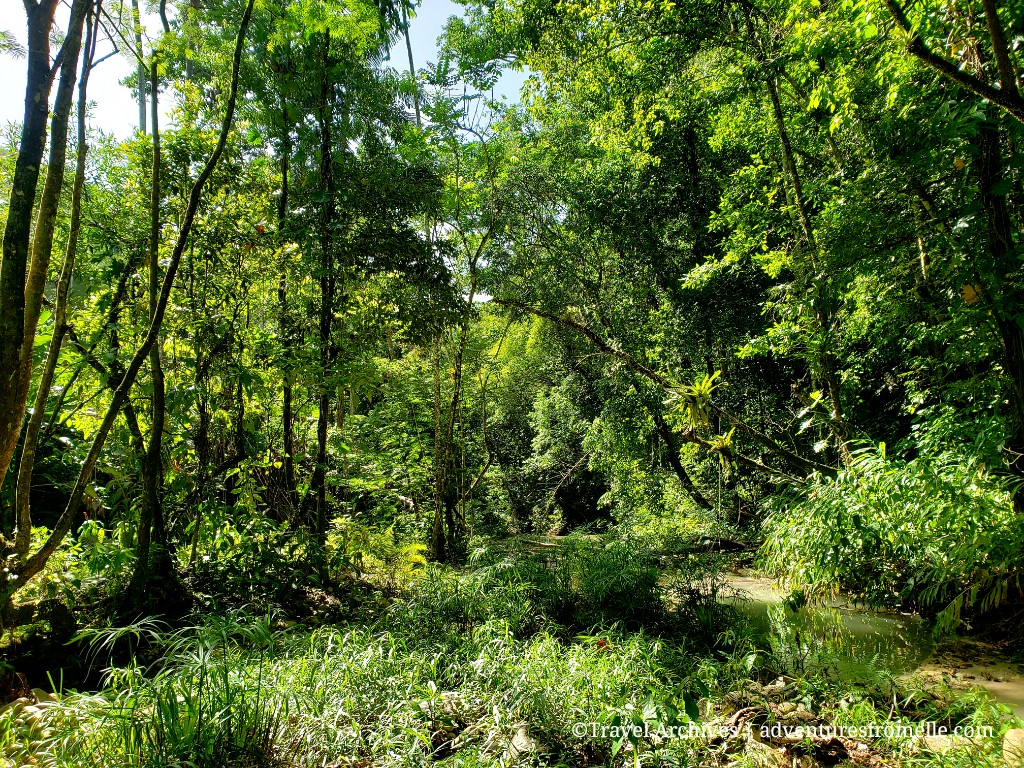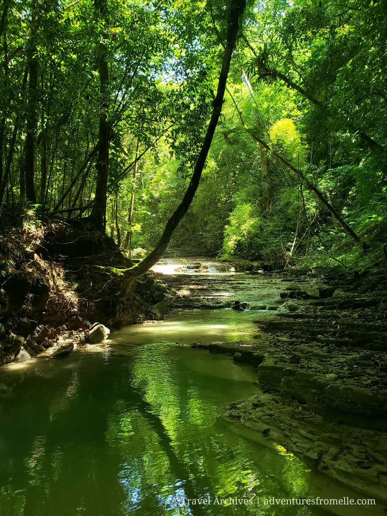 We drove about 5 minutes or less beyond the bridge of Rio Sambre and parked on the side of the road, then hiked for perhaps 15 minutes. It’s a short gentle-moderate hike but is best done without load as you’ll need hands to help you at a few bits. Also, make sure to bring repellant. The mosquitos were OUT!!!!