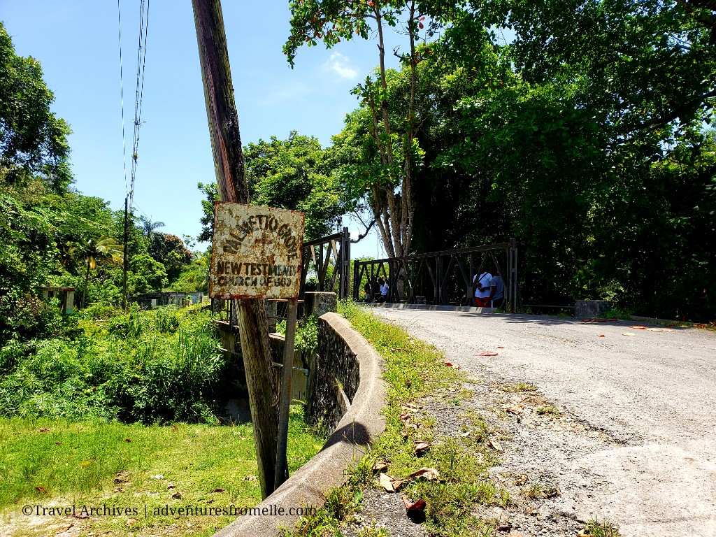 There’s not much in way of landmarks nor map markers to follow. Palmetto Grove and Johnny Falls are both truly off the grid. There isn’t even a sign to let you know when you’ve crossed the parish lines of St. Catherine into St. Mary. Feel free to stop and ask questions to confirm if you’re on the right track, but it’s a straight road so you’re unlikely to get lost. We met Nathan at a bridge with a sign for the Palmetto Grove New Testament Church of God. It’s at this bridge that the Grove Swimmers perform their breathtaking diving feats.