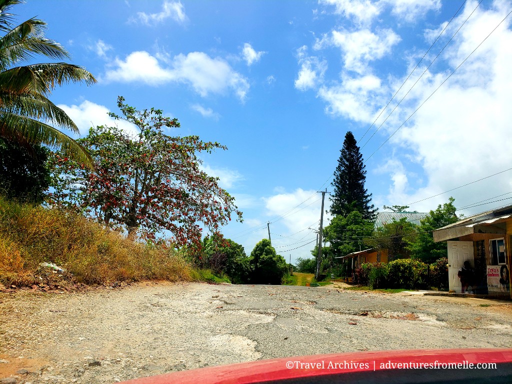Johnny Falls is located in Palmetto Grove, St. Mary parish. From Kingston, we took the North-South Highway (A1) and exited at the Linstead toll exit for $550JMD. After this, it was a bumpy ride past some farms, a few churches and small districts such as Guys Hill and Springfield. The overall drive from Kingston was about 90 minutes, and took this long because of the terrible road conditions after leaving the highway. There were a few good stretches, but otherwise the road was riddled with potholes.