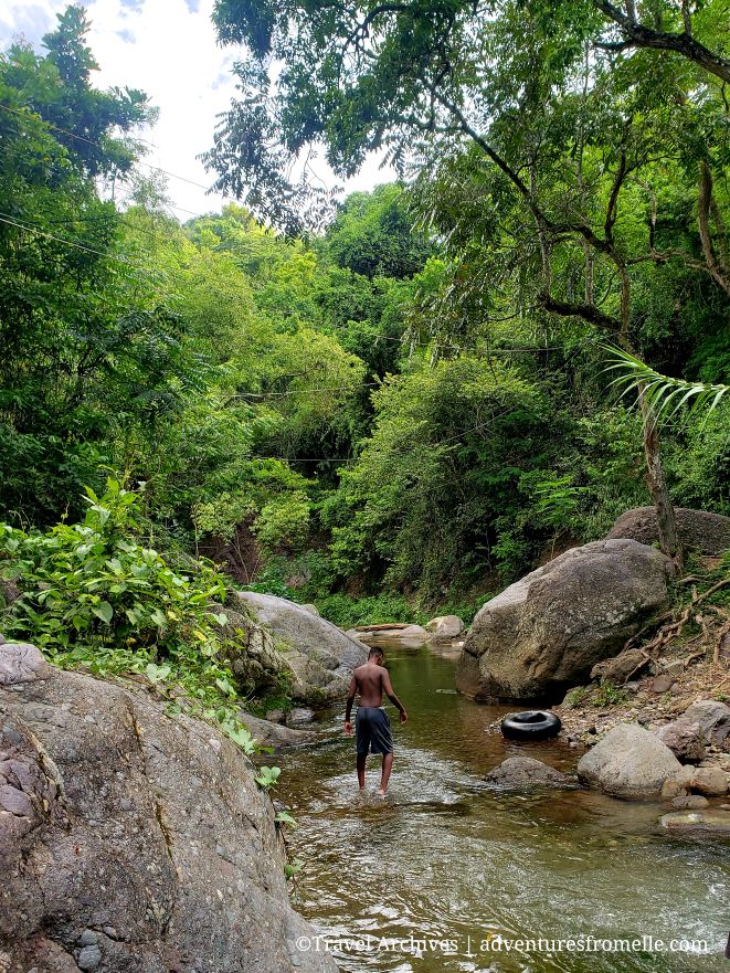 Much to my surprise, I only encountered two small boys by the river on a Sunday afternoon! Perhaps the Maryland residents have grown used to the river being there and seldom go for a swim. However, there wasn’t much water to swim in when I visited because the area has not had rainfall in a while. When the rains are heavy, I hear the water is strong and powerful and extends to near the football field. Sometimes the residents use sandbags to create a swimming pool of sorts during dry season.