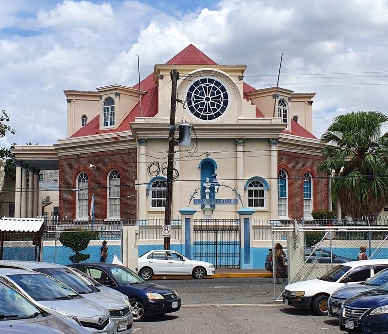 The Church of Scotland is Presbyterian in polity, shaped by John Knox in the Reformation of 1560 when it split from the Catholic Church. As such, when Scots came to Jamaica in the 17th century and beyond, they brought Presbyterianism to the island with them. Today, 65% of Jamaican Christians identify as Protestant and a few Presbyterian churches still exist such as the St. Andrew Scots Kirk Church in Downtown, Kingston shown above. Presbyterian missionary work began in Jamaica in 1824 at Hampden in Trelawny. In 1965, the Presbyterian Church merged with the Congregationalists to form the United Church of Jamaica and Grand Cayman, and they have several branches islandwide.