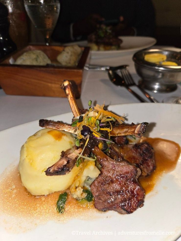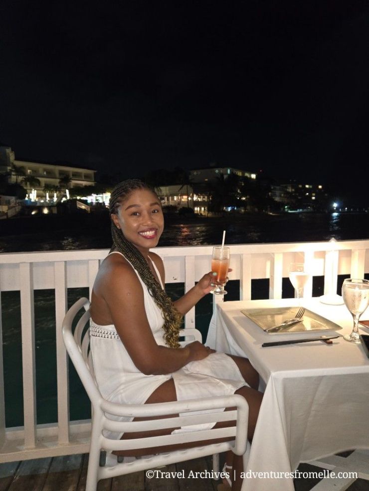 For me, the star of Couples Tower Isle were the restaurants and I’m happy to report that the Jamaican food options were plentiful, but sans pepper. Breakfast and lunch were casual buffet-style dining, but we managed to check out two a la carte restaurants for dinner– namely the Eight Rivers and Bayside restaurants. The food at Eight Rivers was absolutely fantastic. After soup and salad, I had the char grilled rack of lamb with mashed potatoes pictured below. My partner’s medium steak was great too. Neither of us had any room left for dessert. On our second night, Bayside provided a romantic waterfront setting with wooden gazebos, elegant rattan chandeliers and soft candlelight. We shared an appetizer platter of beef and vegetable kebabs, sake marinated salmon teriyaki and shrimp spring rolls, followed by tom kha soup, Vietnamese salad and a seafood main course.